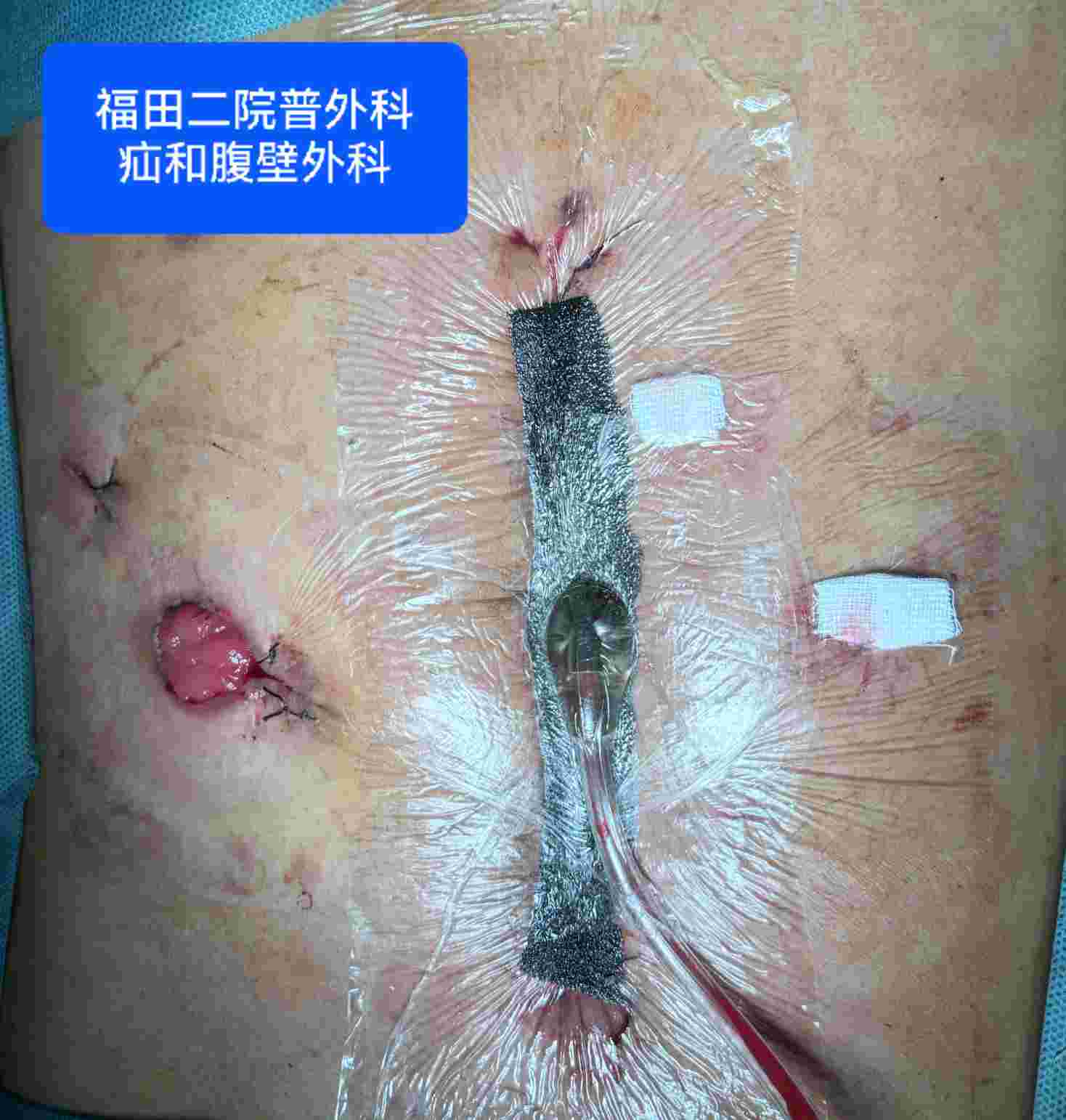 深圳市福田区第二人民医院普外科、疝和腹壁外科采用改良封闭式负压引流技术,治疗的多个腹壁难愈性伤口感染的病人,取得良好的效果。