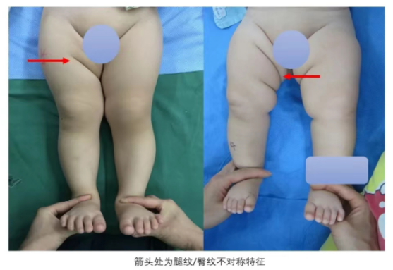 在门诊遇到从社区卫生服务中心急匆匆赶来的年轻宝妈,抱着3月大的宝宝焦急地说:医生,你快看看吧,今天社区体检时,那儿的医生说我的孩子腿纹不对称,建议进一步检查,怎么办?