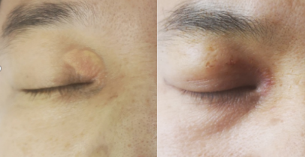 是黄瘤病的一种,常为代谢障碍性皮肤病,由于脂质代谢障碍致脂质沉积于皮肤部位而形成于局部皮肤的黄色或橙色斑块。好发于眼睑部位,中年女性多见,可伴或无高脂血症。常对称分布,呈黄色斑块,境界相对清楚。无明显不适,缓慢增大,影响外貌。