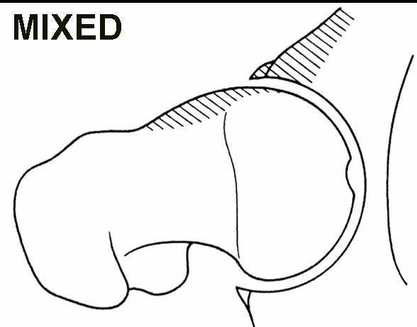 2003年Ganz等提出髋关节撞击综合征(femoroacetabular impingement syndrome,FAI)的概念。髋关节撞击综合征是因发育不良、股骨头坏死、股骨头滑脱、髋臼内陷、创伤、手术过度矫正及其他原因导致的一组髋关节症候群,主要表现为青少年和中年患者间断或持续性腹股沟区疼痛,在下蹲、弯腰、抬腿、爬山等屈髋动作时诱发疼痛或加重,伴髋关节活动受限。部分患者表现为髋部无力、打软、假性交锁。该疾患可导致髋关节相应部位盂唇损伤、软骨损伤,晚期发展为骨