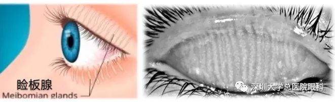 睑板腺位于眼皮睑板内,与睑缘成垂直排列,并开口于睑缘。其能分泌油脂物,具有阻止水分从眼表蒸发、增加泪膜稳定性、润滑睑缘及眼球表面等作用。随着年龄增长,睑板腺纤维组织增长,腺管上皮增生和角化,致使腺管口变窄并凸起,睑板腺分泌物排出阻力增大、排出量减少。泪膜层中脂质减少,导致泪液蒸发过快,从而引起或加重干眼。