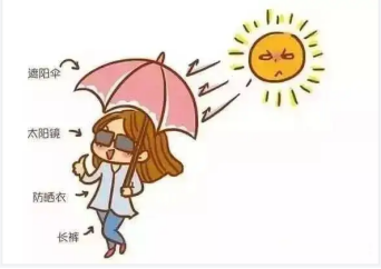 2.避免日照,注意防晒。可以长期使用日光防护指数(sun protection factor,SPF)≥ 30、UVA防晒指数(protection grade of UVA,PA)+++的广谱(UVA + UVB +蓝光)防晒剂,每2小时涂搽1次,每次2 mg/cm2;在外用防晒霜的基础上加强遮挡性(规避性)防晒,在外出的时候可以穿上防晒衣,带上防晒帽,还要准备一把遮阳伞,避免长时间在烈日下活动。