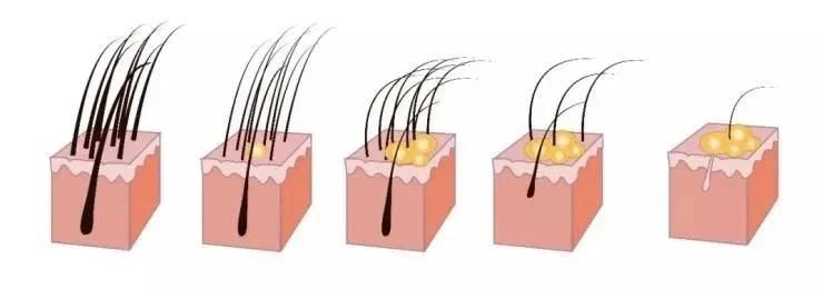 头发变细和变软本质上是毛囊合成头发的能力变弱,而头发少则是毛囊失去合成头发的能力,归根结底都是同一件事情,那就是——毛囊生发能力变弱,也就是我们常说的毛囊萎缩。若毛囊处于不健康的萎缩状态,那么毛囊就可能只长出一根头发,而且还又细又软。