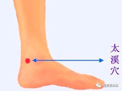 太溪穴、涌泉穴属于足少阴肾经的穴位,可引火下行、滋养肾水。