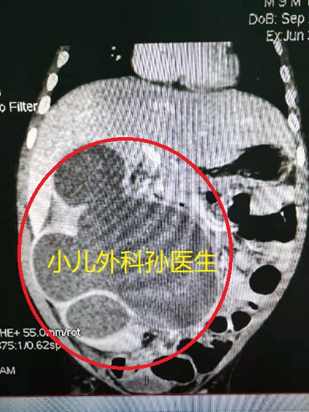医生这句安慰的话语真是说到家长心坎里了,家长也只记得这句安慰的话了。看到孩子出生后一直能吃能拉能睡能玩,完全看不出有任何异常的表现,于是本应继续的随访就此中断了,再没有复查过超声,直到孩子到九个月时发现了这个腹部包块。