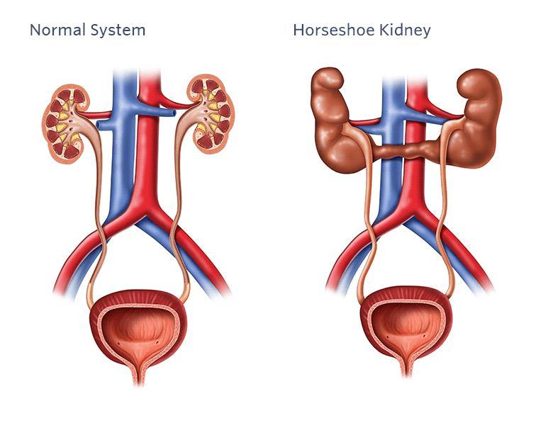有马蹄肾的人中,有三分之一将至少有一个涉及心血管系统、中枢神经系统或生殖泌尿系统的其它畸形或并发症,如下: