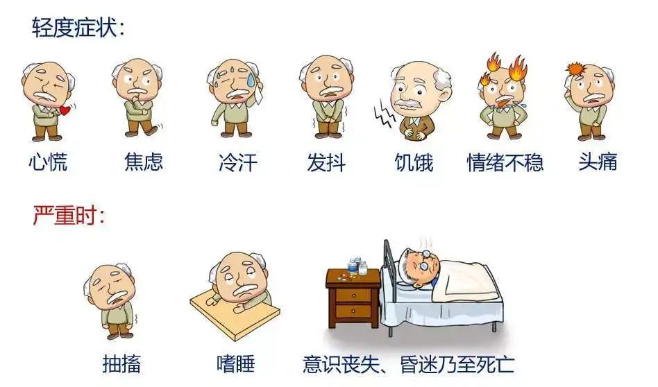 重度低血糖表现会更加危急,短期内会出现说话含糊、认知障碍、抽搐、行为改变,甚至昏迷、失去知觉、危及生命。