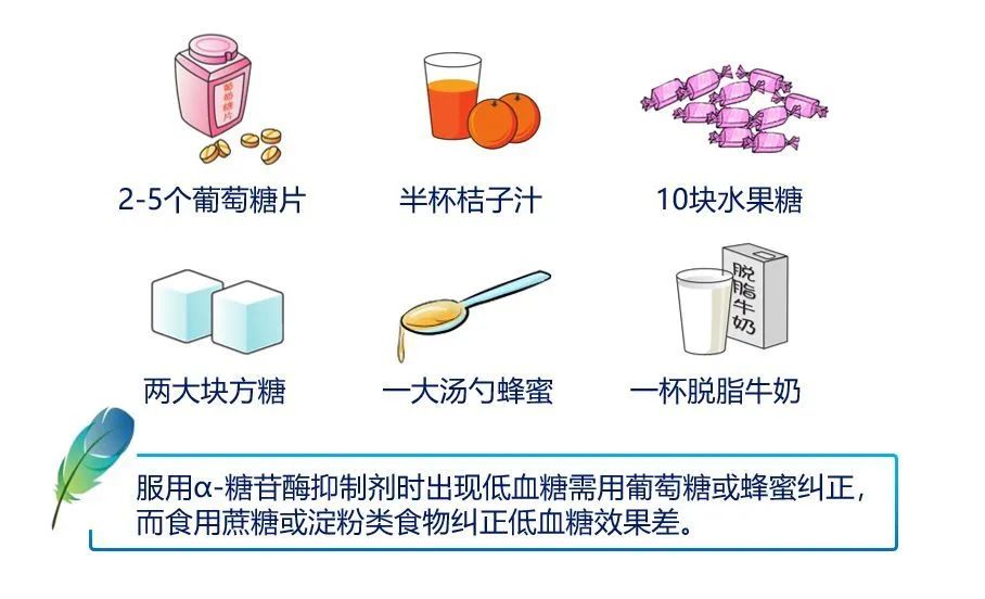 1、发生低血糖反应,及时服用15-20g葡萄糖或简单碳水化合物;