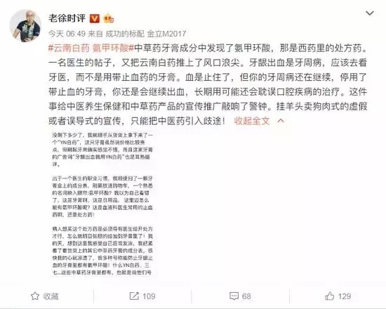 医生实名diss云南白药牙膏
