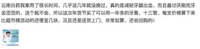 随便点开一个云南白药牙膏的淘宝链接,你就能看到这种评价: