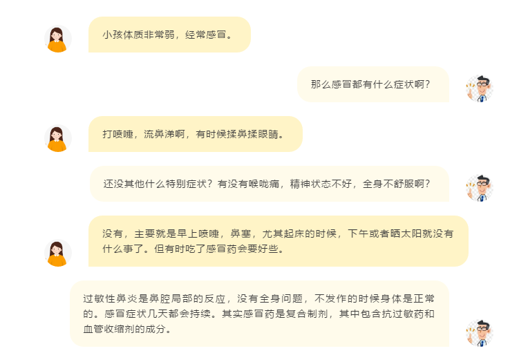 王女士带小孩来到南方医科大学深圳医院儿童耳鼻咽喉科门诊,跟周医生说:小朋友这几天又打喷嚏、流鼻涕、揉眼睛揉鼻子啦。