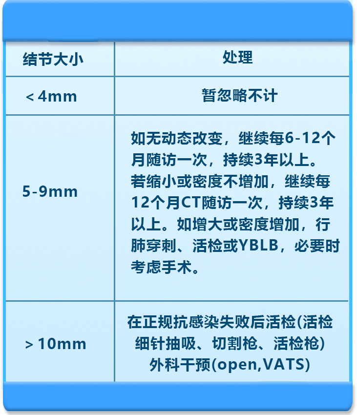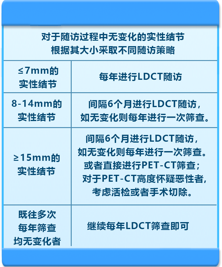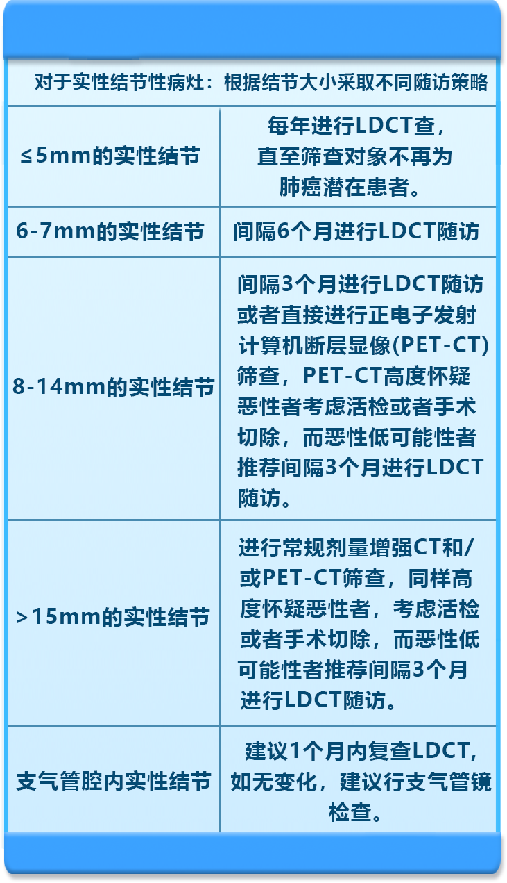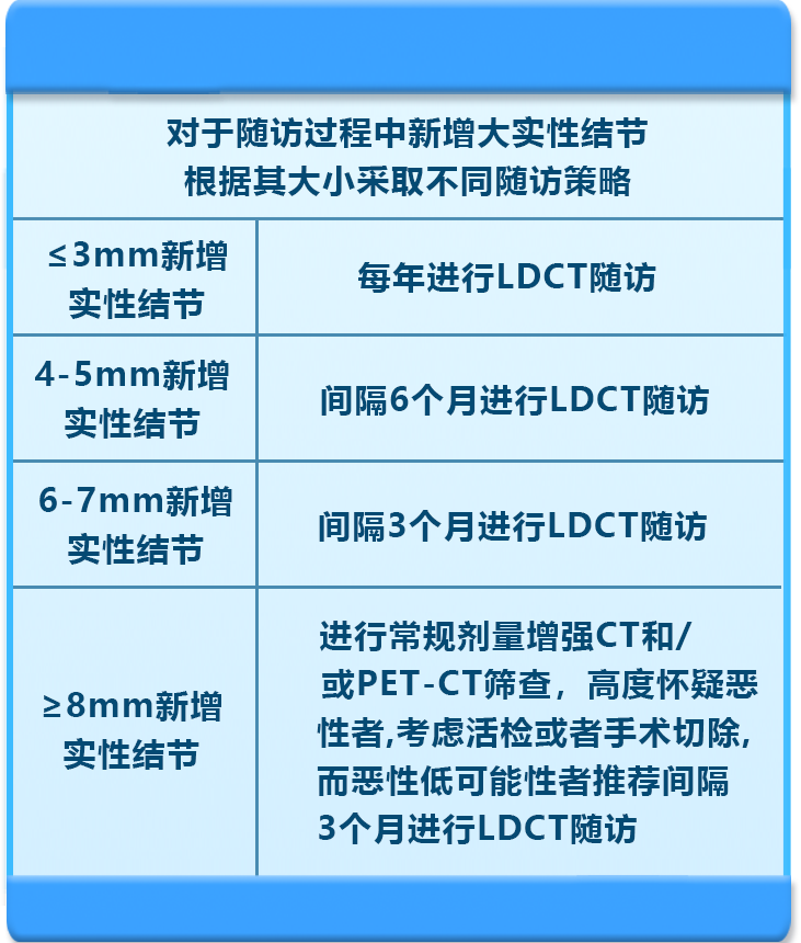 根据不同的结节类型,大小,需要遵循不同的复查随访策略: