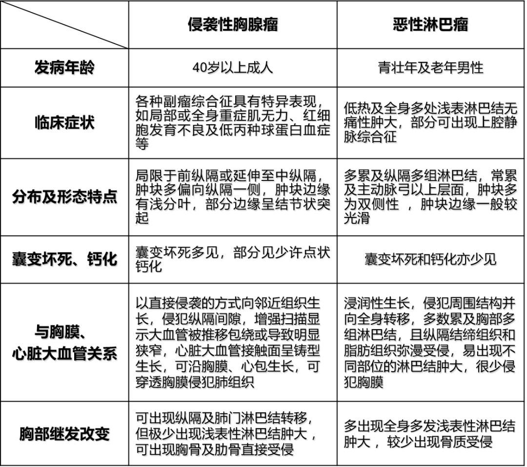侵袭性胸腺瘤与恶性淋巴瘤鉴别要点