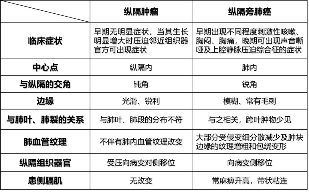 纵隔肿瘤与纵隔旁肺癌鉴别要点