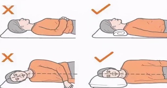 从正面看,我们的颈椎是正直的。侧卧位睡觉时,要用枕头支撑起全部颈椎和头部侧面,才能保证颈椎的筋膜、肌肉和关节得到最大限度的休息。故侧卧时,枕头要“高而宽”。其高度约等于侧卧时肩部的高度,宽度约等于肩部到头顶的距离。