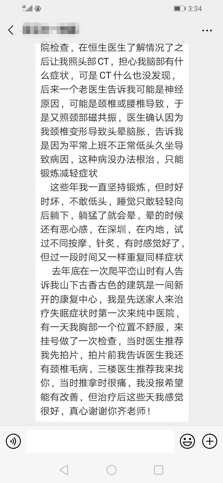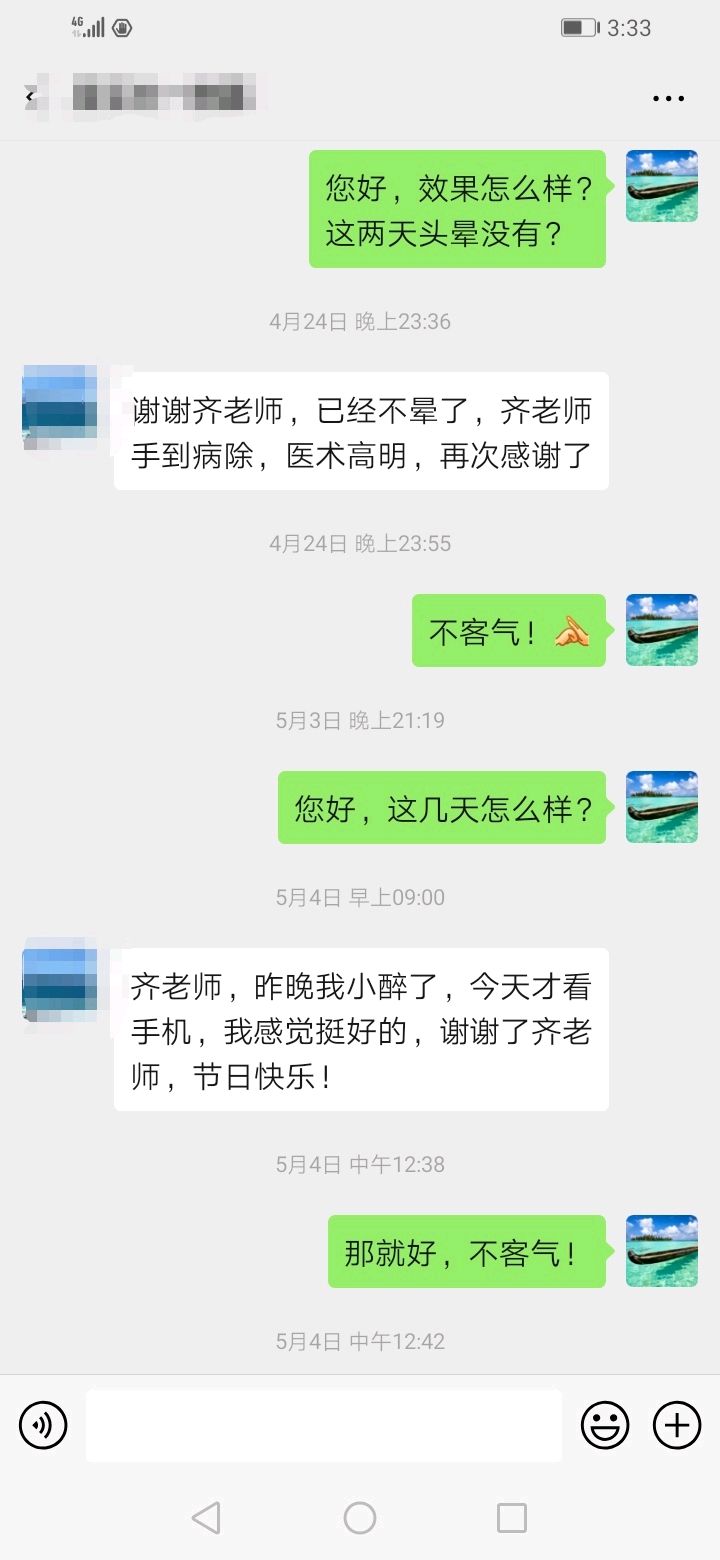 头昏、颈部不适消失,眼睛明亮,视物清晰,低头无头晕。