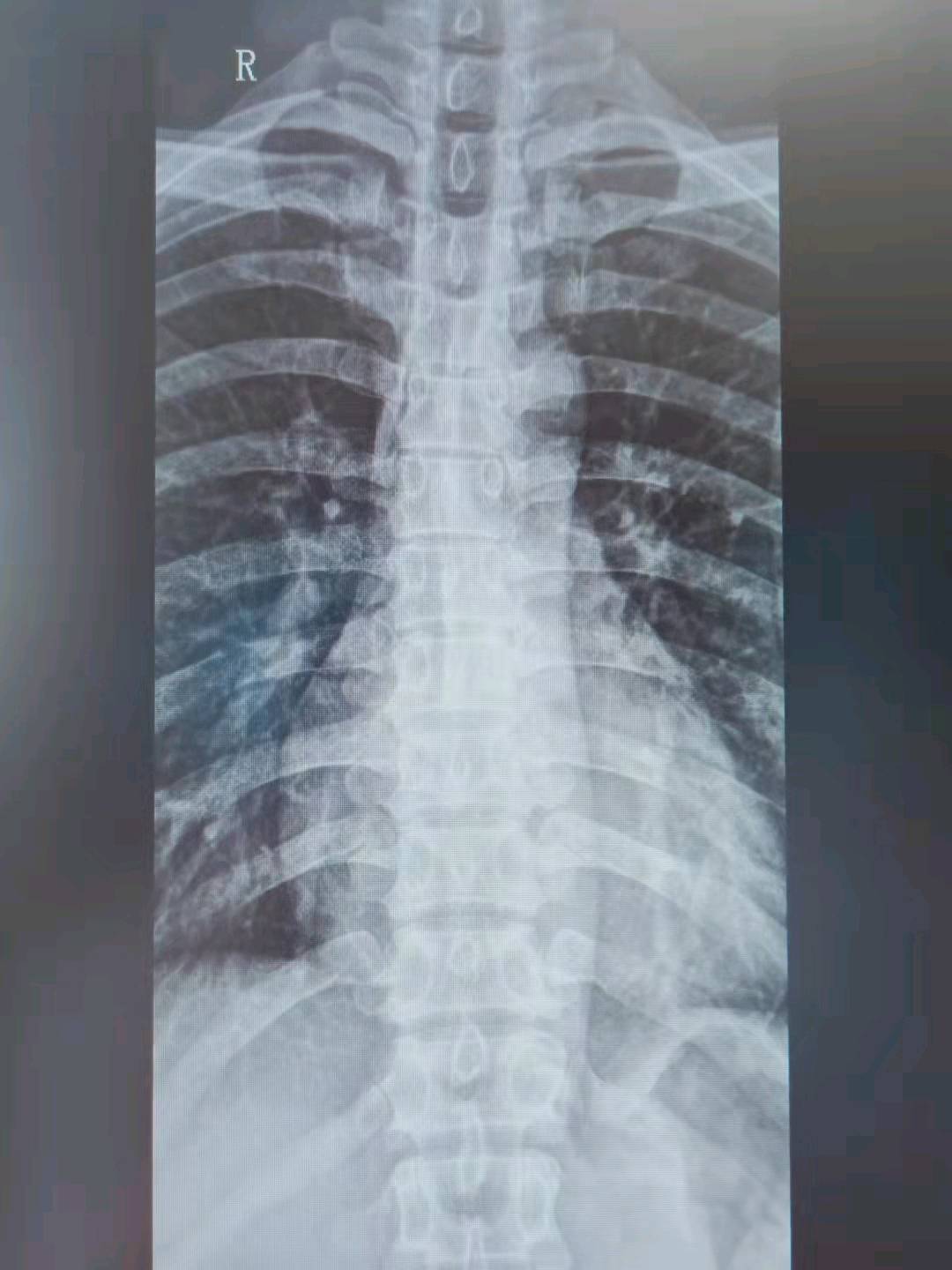 影像:胸椎正侧位提示:胸椎轻微向左侧弯,余未见明显异常。