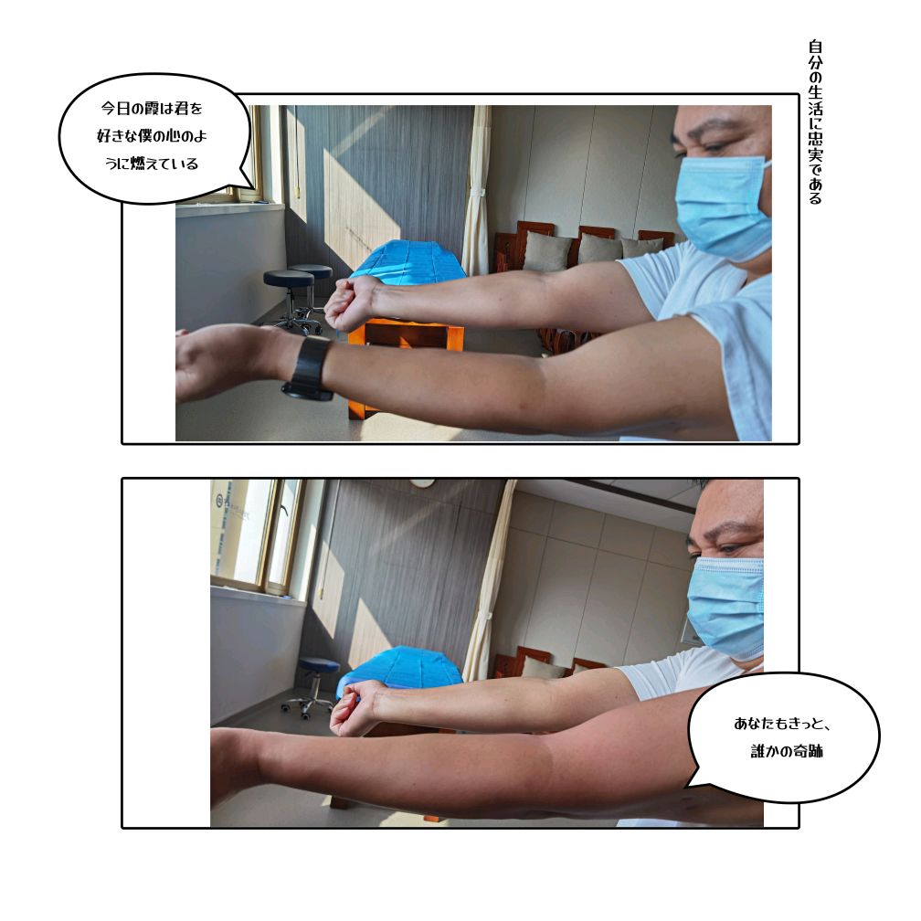 结果:一次治疗后肘关节主动伸直达170度。