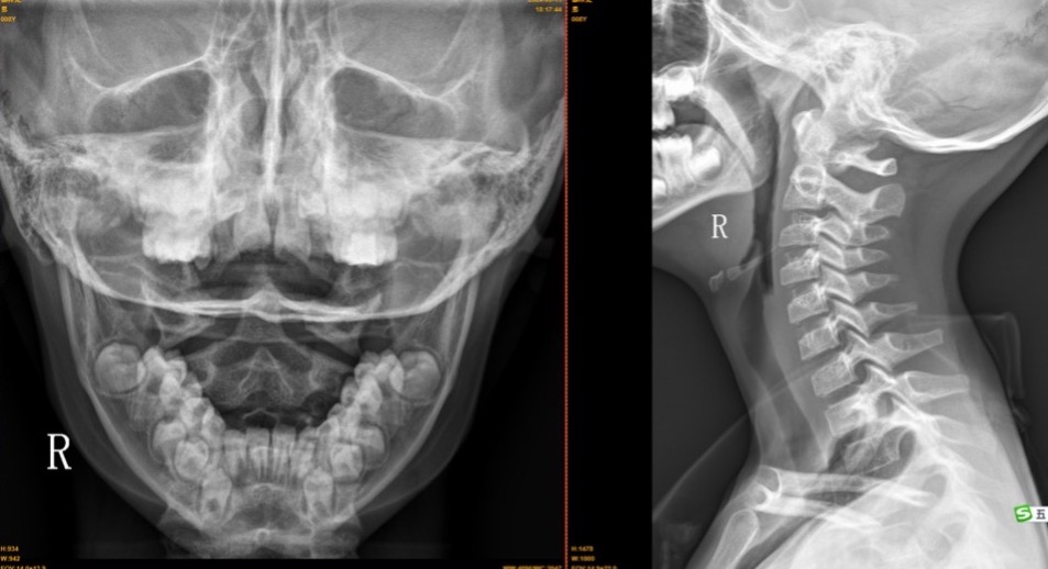 【影像】20240904龙华人民医院X线片报右环齿侧间隙变窄,环椎可疑前移位,不除外寰枢关节半脱位。C2椎体不稳,颈椎反弓伴向右侧凸。阅片见枢椎棘突偏右。