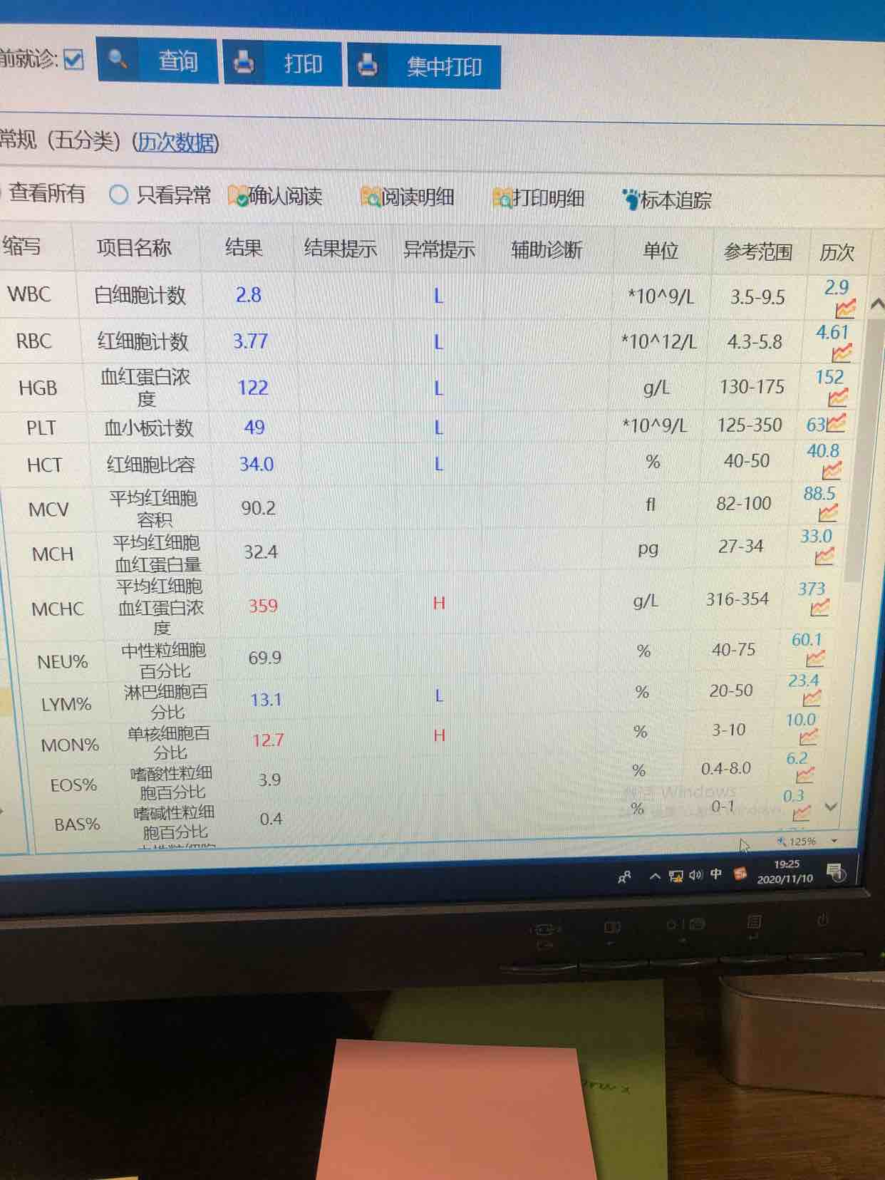 再一次用数据说话,这个患者是纯中医治疗医院住院部第一个出院患者,乙肝后肝硬化、肝癌患者,发现肝癌3年来多次介入、消融治疗,血常规三系减少的原因也是多重的,这次是因消融治疗后发热、疼痛入院的,经过纯中医治疗后,患者的三系都有增加