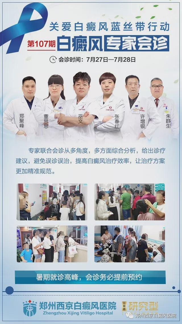 夏季是白癜风的高发期,针对当前白癜风的临床漏诊、误诊,误诊误治的现状,为了让患者享受专业、优质的诊疗服务,7.27-7.28,郑州西京白癜风医院特别开展关爱白癜风蓝丝带行动·西京白癜风名医堂专家会诊第107期,由院内巫文、张春红、董思思、郑聚峰、许增银等资深医师为患者联合看诊,为未确诊白斑、久治不愈白癜风、疑难白癜风等人群进行专家联合会诊,为患者提供优质的诊疗方案,暑期祛白加速度!长达两个月的暑假,为儿童、青少年患者治疗提供了时间上的便利,不会因为治疗而耽误功课,而且,持续强化治疗也能快速控制病情。充分利用这两个月的暑假进行强化治疗,中轻度病情的患者基本可以达到临床康复的效果。较重的患者也可以实施一个大阶段的治疗,病情会得到很好的控制。