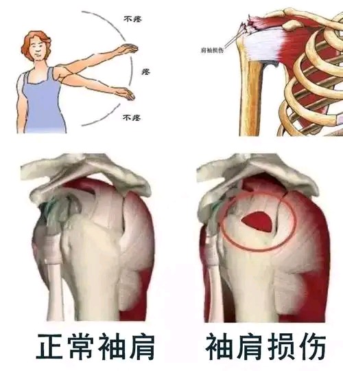 空罐练习:手臂侧平举约30-45度,大拇指朝下(如倒水罐),缓慢抬起放下,锻炼冈上肌。