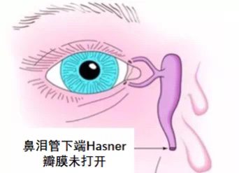 新生儿泪道的末端有个瓣膜,一般会在出生前退化而保持泪道通畅,少数孩子没有退化,就是鼻泪管阻塞,积聚在泪囊的液体内细菌感染化脓就是新生儿泪囊炎。