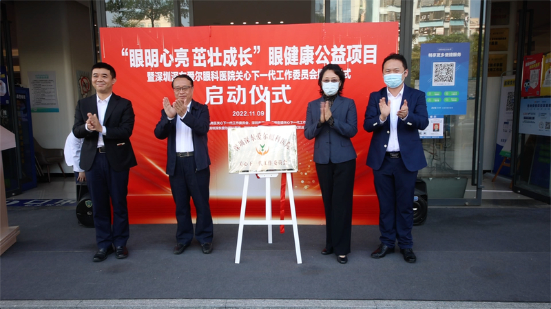 11月9日下午,龙岗区“眼明心亮·茁壮成长”眼健康公益活动在深东爱尔眼科医院启动,深东爱尔眼科医院关心下一代工作委员会也同时揭牌成立。未来将宣传推广预防儿童青年近视的健康科普知识,计划开设学校师生就诊绿色通道,定期前往校园、社区进行免费眼健康筛查和眼健康科普讲座等青少年近视防控工作。