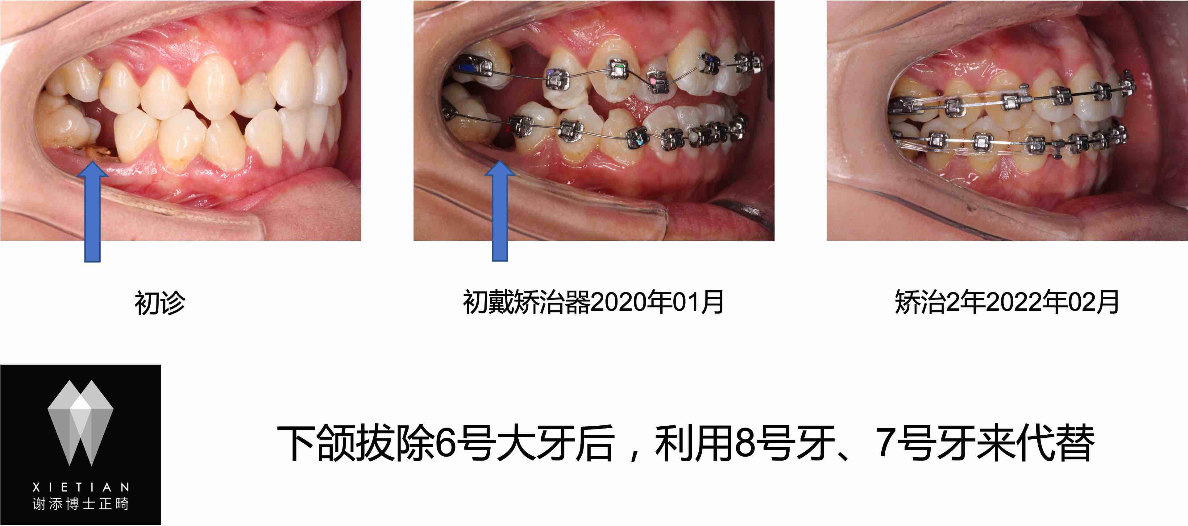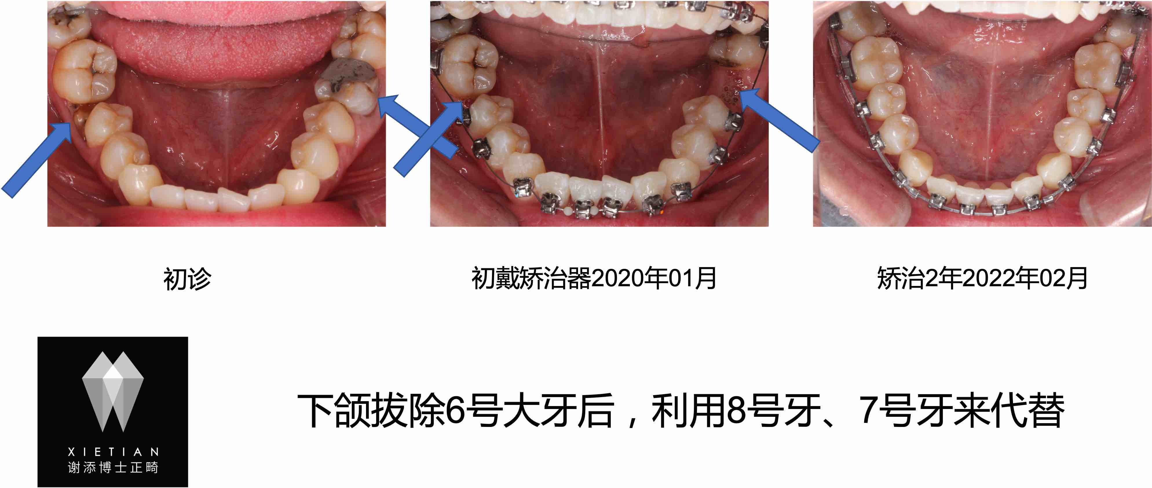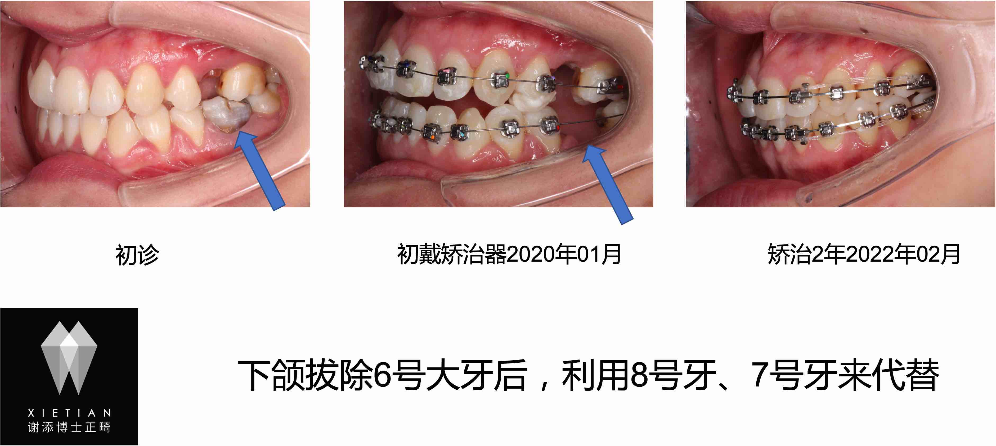 不幸中的万幸是下颌的8号牙(俗称智齿)位置很正,所以我们尝试利用智齿来代替缺失的大牙