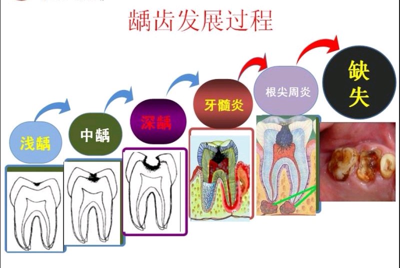 2:要是等到深龋,平时对冷热食物出现敏感,咀嚼食物不适或无法咀嚼食物,这是来补牙对牙齿损伤比较大,术后的效果不佳,有可能会有酸痛等并发症。
