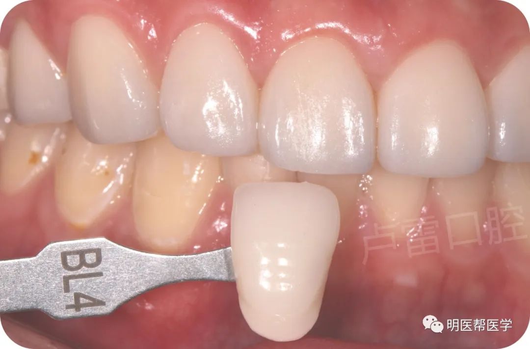 全瓷贴面修复目的:改变 上颌前牙的颜色和外观,颜色要求与其他牙齿颜色接近、略微白。