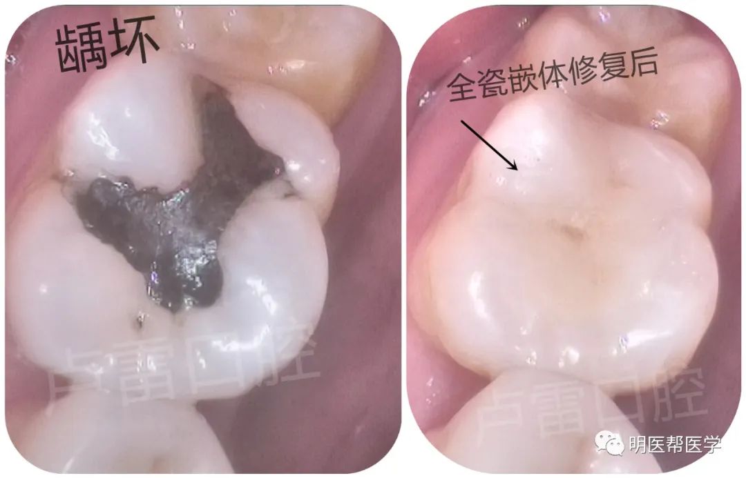 银汞合金补牙与全瓷嵌体前后对比案例。