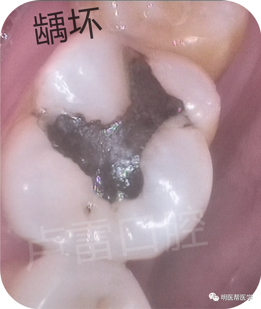 牙齿龋坏,黑色银汞合金补牙,时间久后补牙材料氧化,边缘崩裂,形成继发龋坏,去除银汞合金补牙材料,去除腐质后采用数字化全瓷嵌体修复案例。