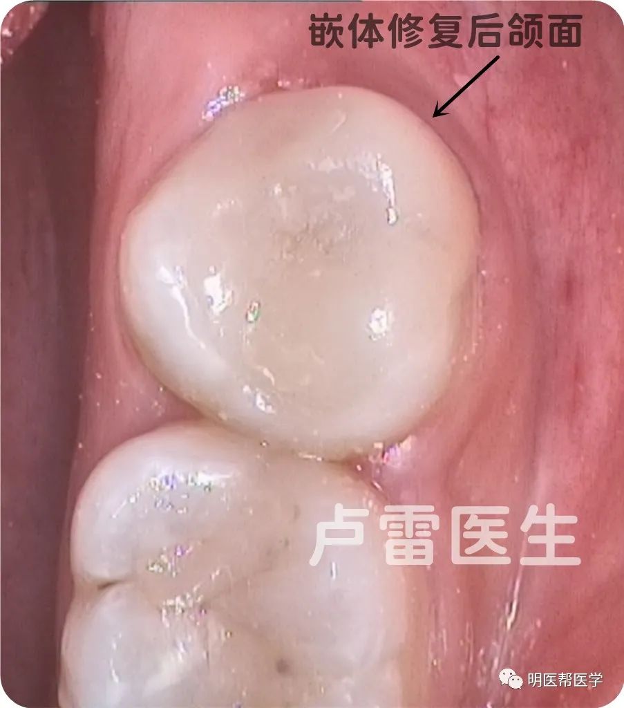 数字化扫描制作全瓷嵌体修复后,颌面观。