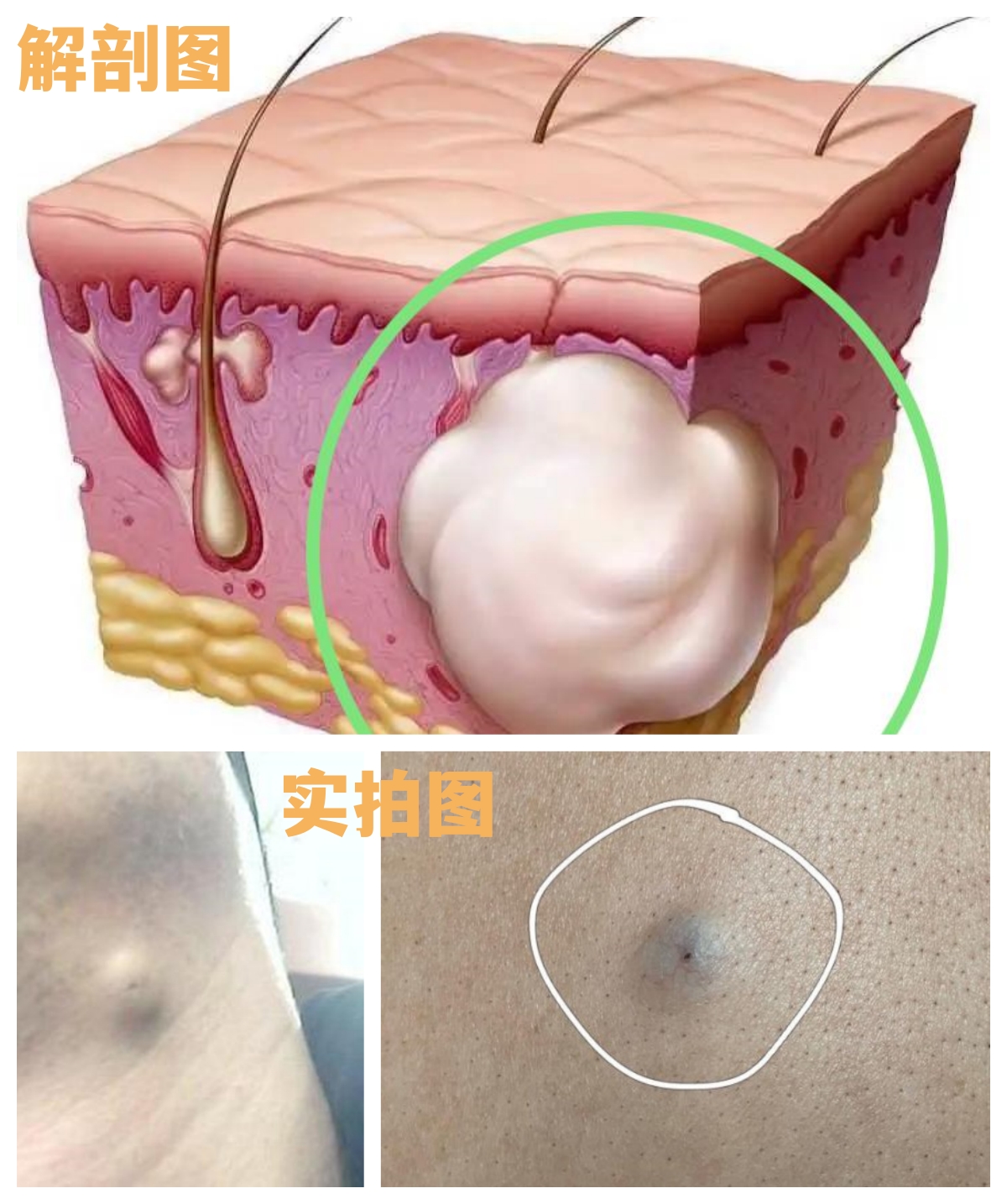 皮脂腺囊肿俗称“粉瘤”,是指因皮脂腺导管阻塞后,腺体内因皮脂腺聚积而形成囊肿。这是最为多见的一种皮肤良性肿瘤,很多人都曾有过长粉瘤的经历,尤其是处于生长发育旺盛期的青年人。