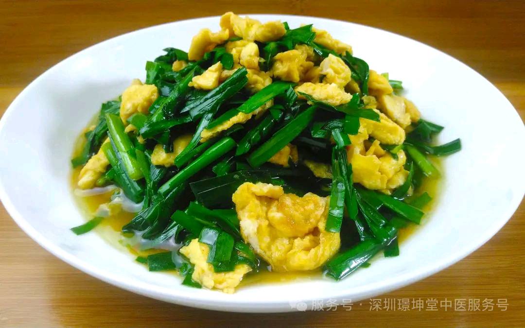 韭菜炒鸡蛋:韭菜切段,与鸡蛋同炒,做法简单,可作为日常菜肴,帮助温补肝肾,补充阳气。
