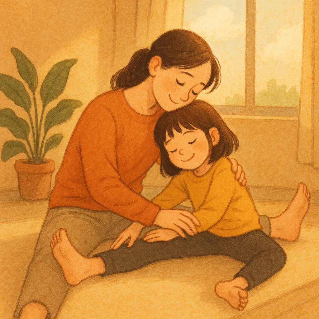 “当妈妈做运动时,让孩子帮你压腿。”