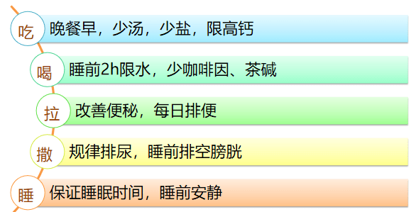 3、定时训练在以往晚间经常尿床的时间提前半小时用闹钟结合人为叫醒,让其在室内来回走动,或者用冷水洗脸,使在神志清醒状态下把尿排尽,目的也是有助于建立条件反射。