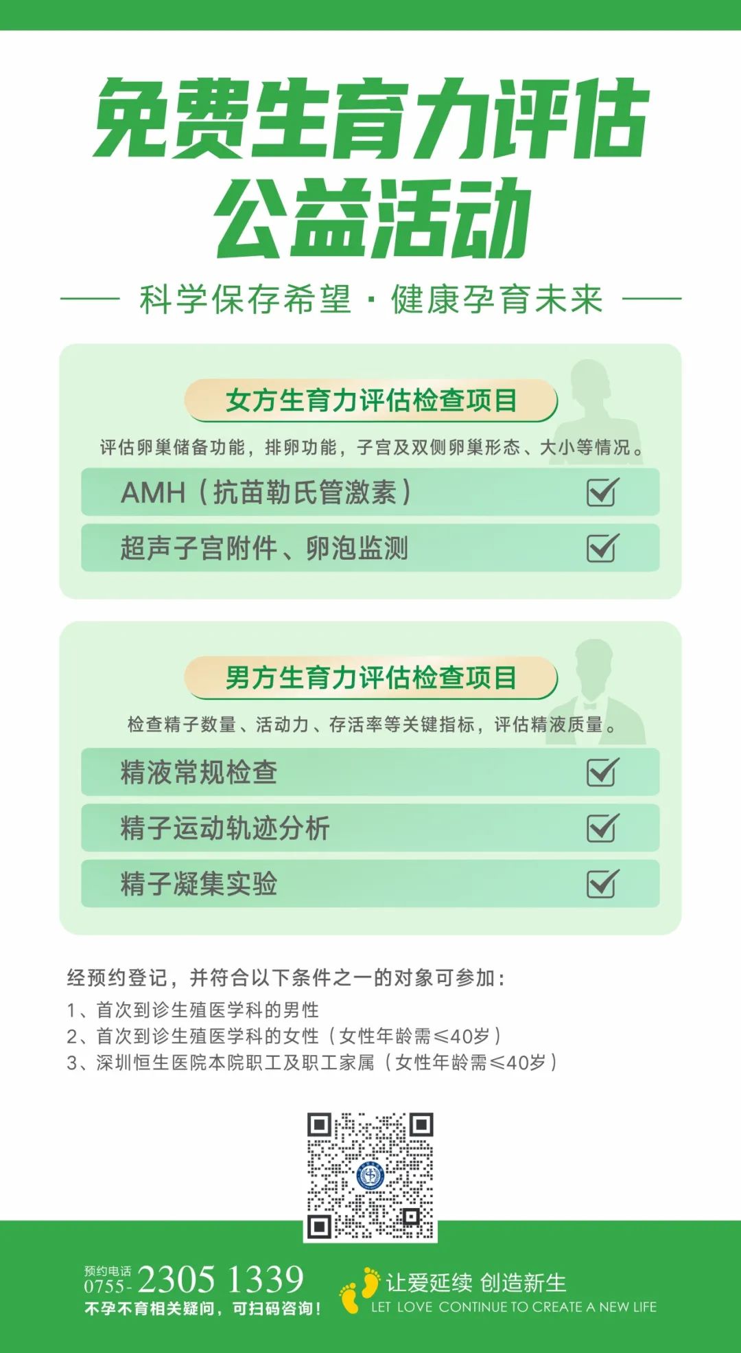 ⚪ 男女双方免费生育力评估