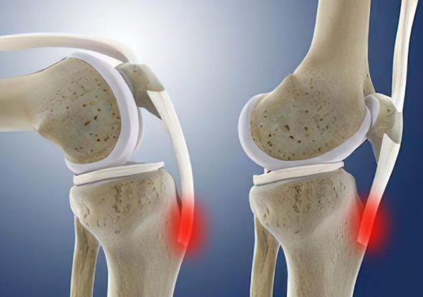 从解剖角度看,儿童的胫骨近端骨骺为软骨,前缘呈舌状下缘,称为舌状骨骺。该处的骨化中心在11岁左右出现,约16岁左右骨化中心才与胫骨近端骨骺融合成为胫骨结节。在成为胫骨结节处,该处较薄弱,而且骨骺正处于髌韧带的止点,剧烈运动下,股四头肌的强烈或长期持续牵拉容易导致髌韧带出现过度牵拉损伤,导致舌状下缘的骨骺出现损伤、撕脱。进而影响该处的血液循环,引起骨质增生,导致胫骨结节增大,明显向前突出。不少成年人胫骨结节突出明显,就是由于此病引起。
