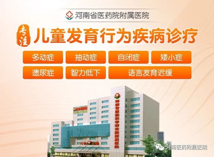 河南省医药科学研究院附属医院儿科门诊专业治疗儿童多动症,儿童抽动症,儿童矮小症,儿童语言发育迟缓,儿童智力低下,儿童自闭症,儿童注意力不集中,儿童学习困难,儿童遗尿症等儿童行为发育疾病。