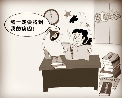 3、你对怀疑自己所得疾病的有关医学读物(现在多是百度上面的医学网站)十分注意,而且对号入座。