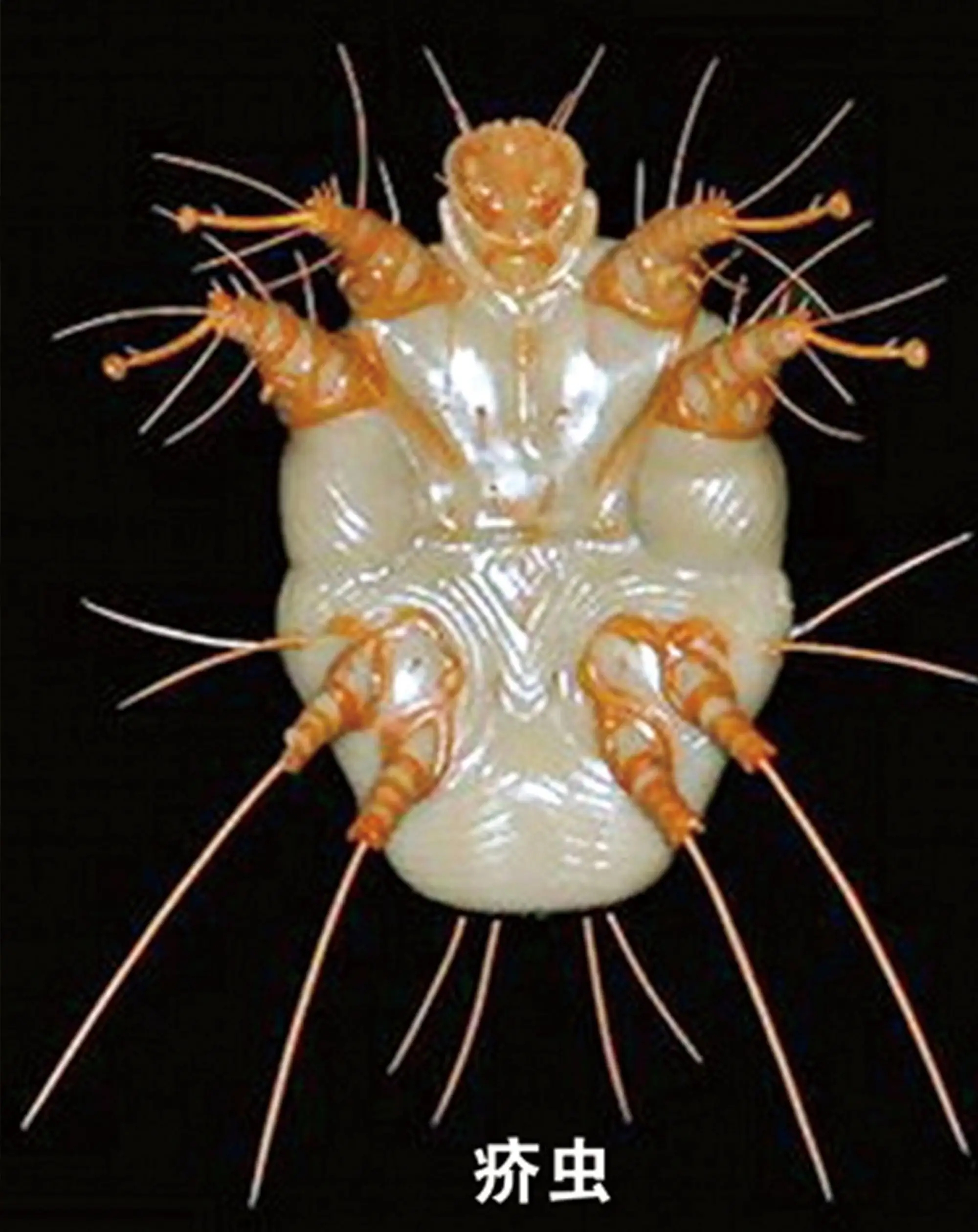 其对皮肤的损害为特征性的皮肤隧道、脓疱、水疱、瘙痒性红色小丘疹、湿疹样疥疮结节等。
