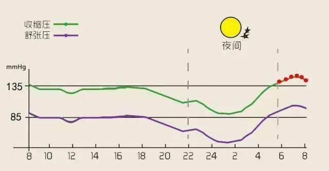 然后血压又逐渐下降,到了凌晨2点~3点左右血压达到全天的最低值。全天血压波动幅度在20~30mmHg之间。这就是大多数人的血压波动特点。