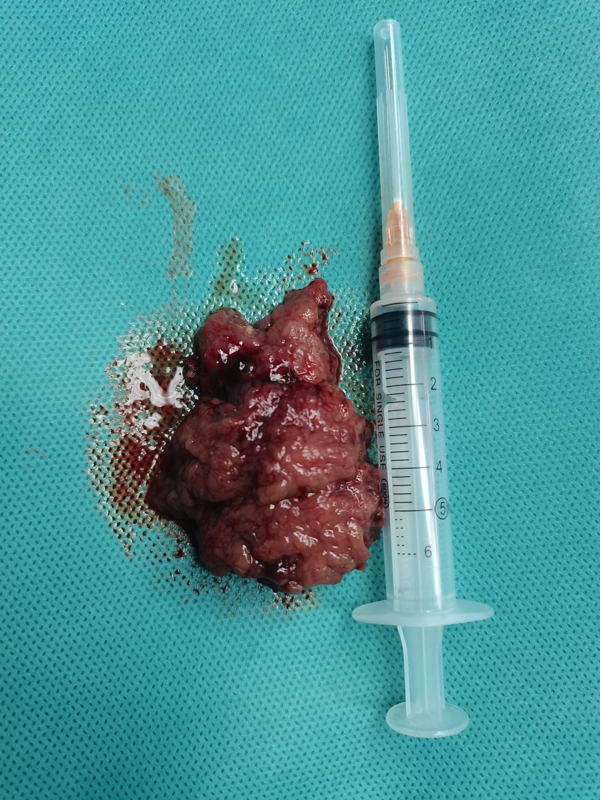 最近两周做了两台TEM,肿块距离肛缘均有10cm左右,一台肿块直径做0.7cm,另一台肿块直径约6.0cm,是两个极端,好在均完整切除了,术后患者还是要每年复诊随访。