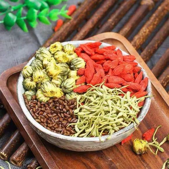 养肝饮材料:杭白菊、金银花、玫瑰花、枸杞子、陈皮各适量,做法:上述材料洗净,加水煮30分钟,代茶饮。煲上一壶,养肝清热,解暑养颜,完美!