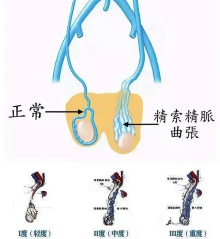 精索静脉曲张是一种血管病变,是指精索蔓状静脉丛的异常扩张、伸长和迂曲,可导致疼痛不适及进行性睾丸功能减退,是男性不育的常见原因之一。精索静脉像蚯蚓一样曲张,呈团状或结节状。多发生于青壮年男性为主,尤其是久站工作时间者,通常以左侧发病为多。