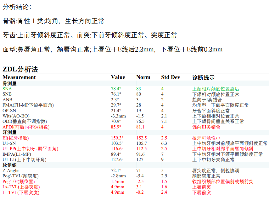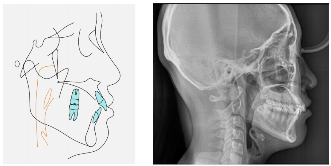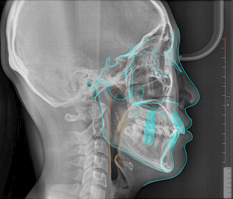 从面部基本特征看:软组织侧貌微前突,颏部形态良好。