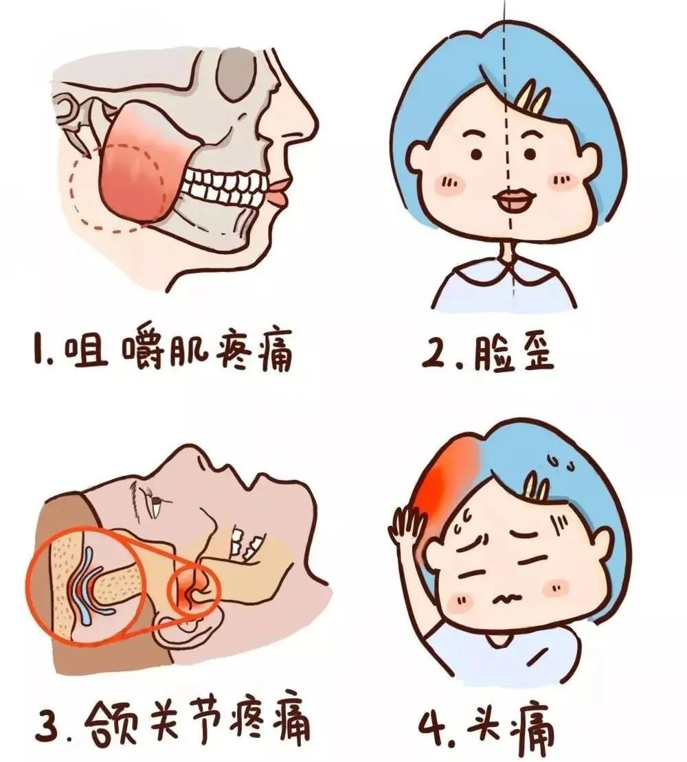 4、长期的下颌被迫性后退位,下颌前伸需要先张口再前伸,会增加颞下颌关节的负担,长久会出现关节弹响、疼痛、张口受限。