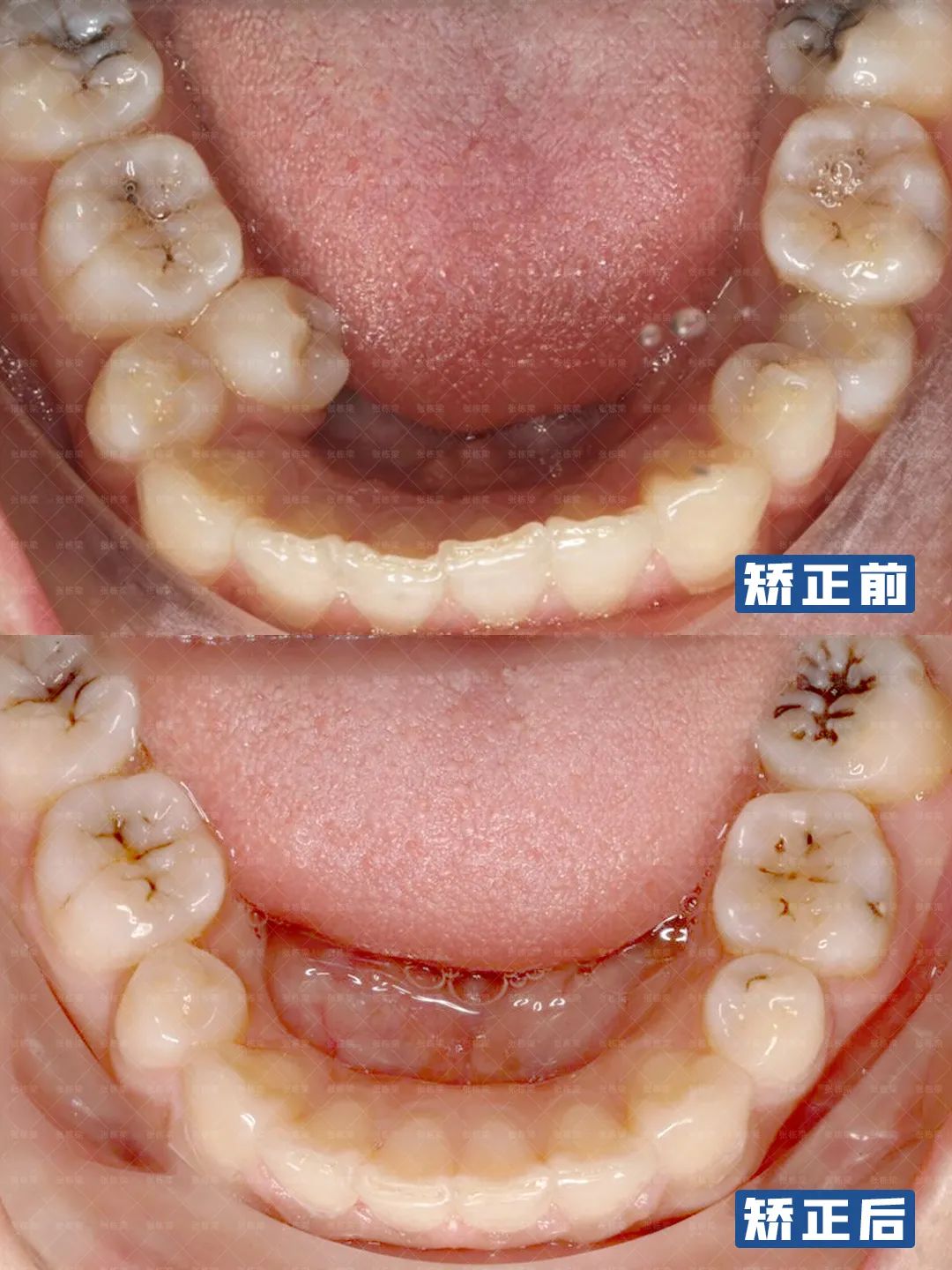 另外这种严重的深覆合还会限制下颌骨的生长,关节同时也处在一个被迫后退的位置,所以在临床上可看到有些闭锁性深覆合的患者会伴随一些关节、气道狭窄的症状,随着上前牙舌倾纠正,下颌被释放出来,整个关节跟气道症状都会变的好转。